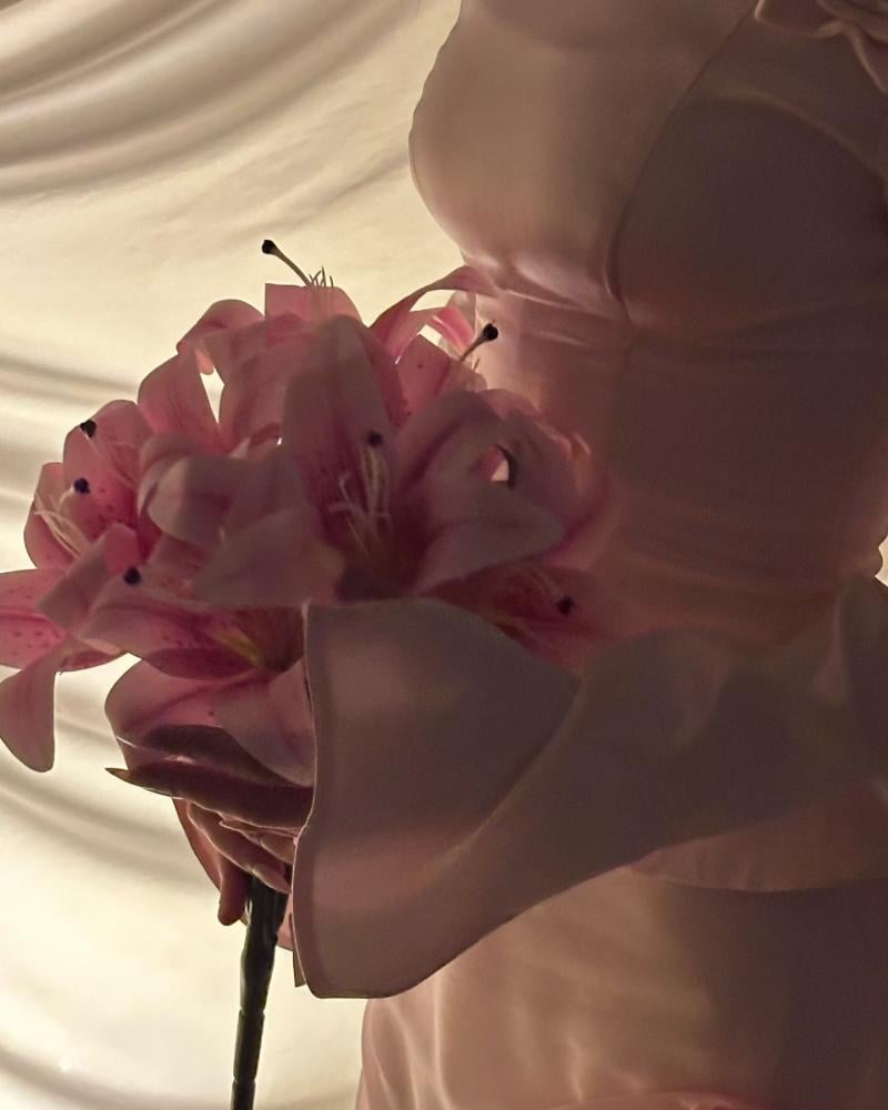 يجب تجفيف الفستان بطريقة مسطحة على سطح نظيف ومستوٍ.