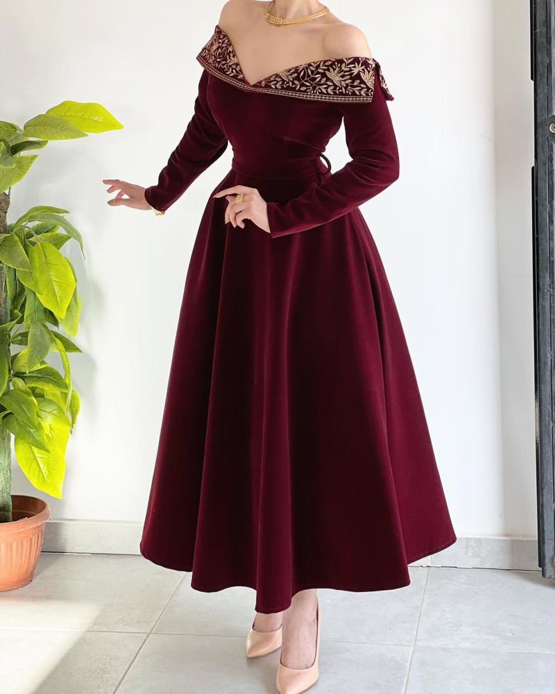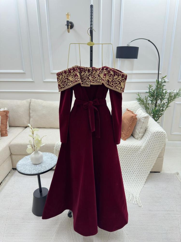 فستان سهرة خامة مخمل جوخ كلفه كمبيوتر دبل كلوش فاخر