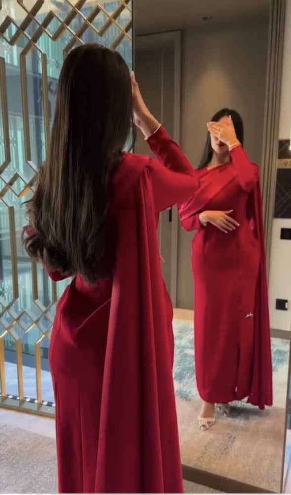 فستان احمر مع شال
