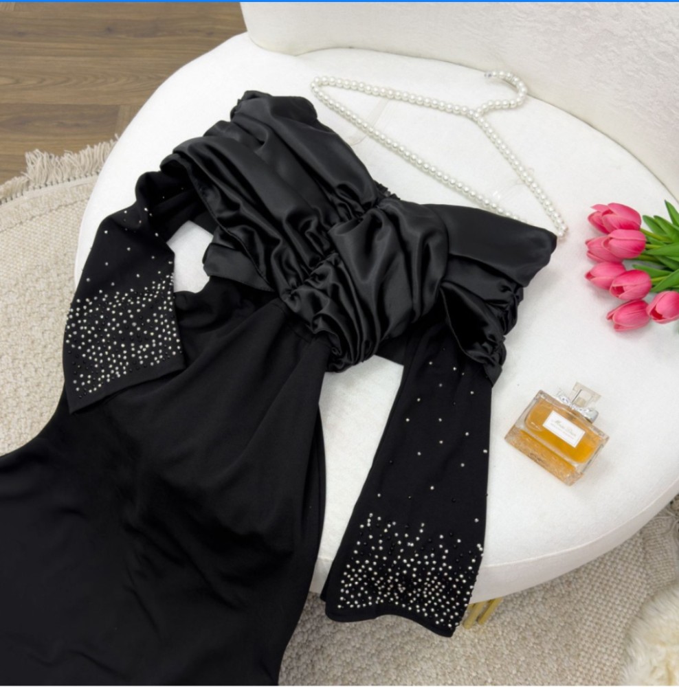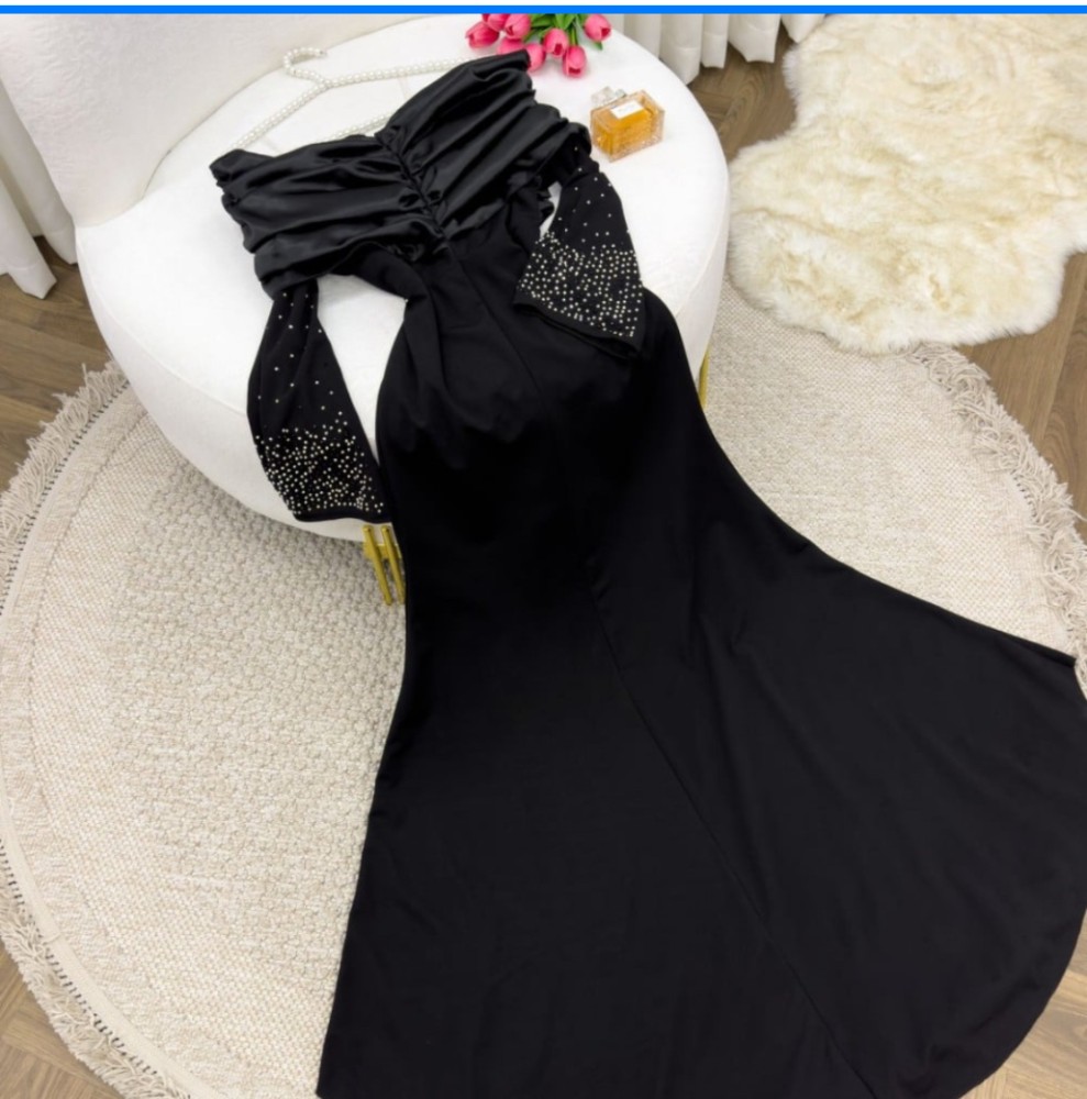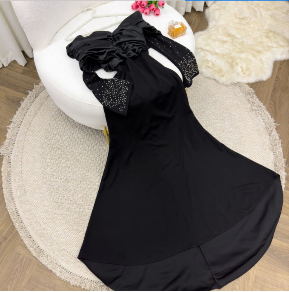 فستان اسود سهره بأكمام